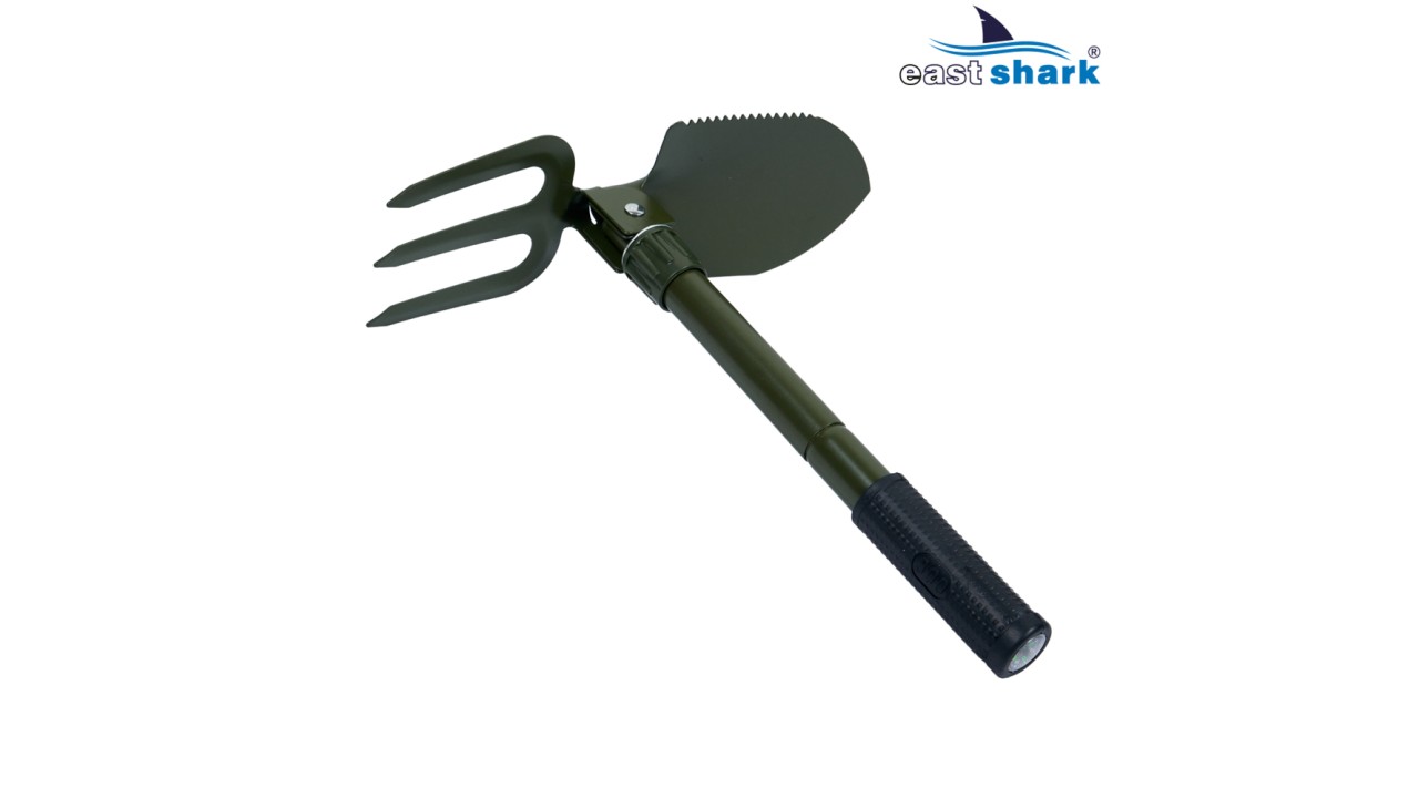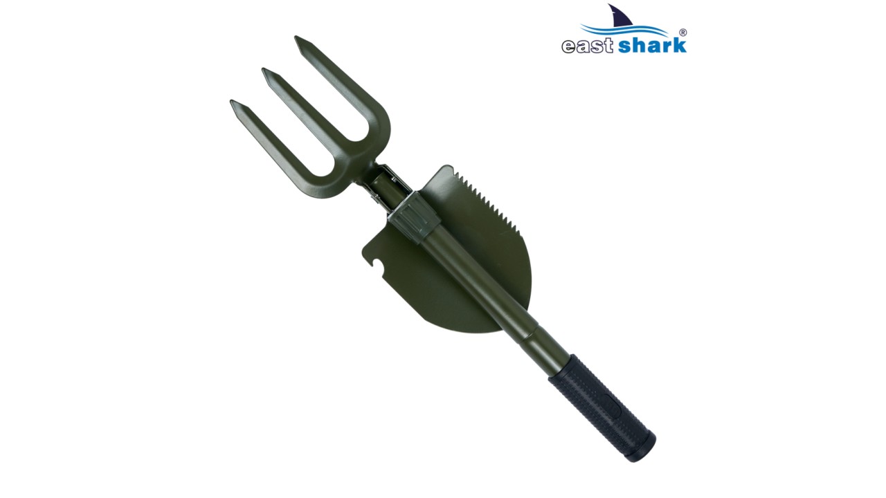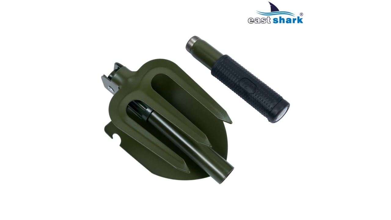 Лопата складная, по этой причине не занимает много места, легко помещается в рюкзаке или кармане сумки, есть крепление на ремень.