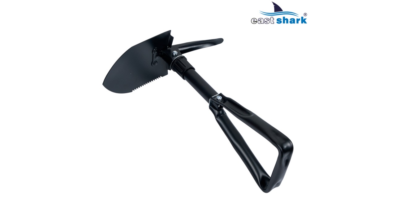 Лопата складная, по этой причине не занимает много места, легко помещается в рюкзаке или кармане сумки, есть крепление на ремень.