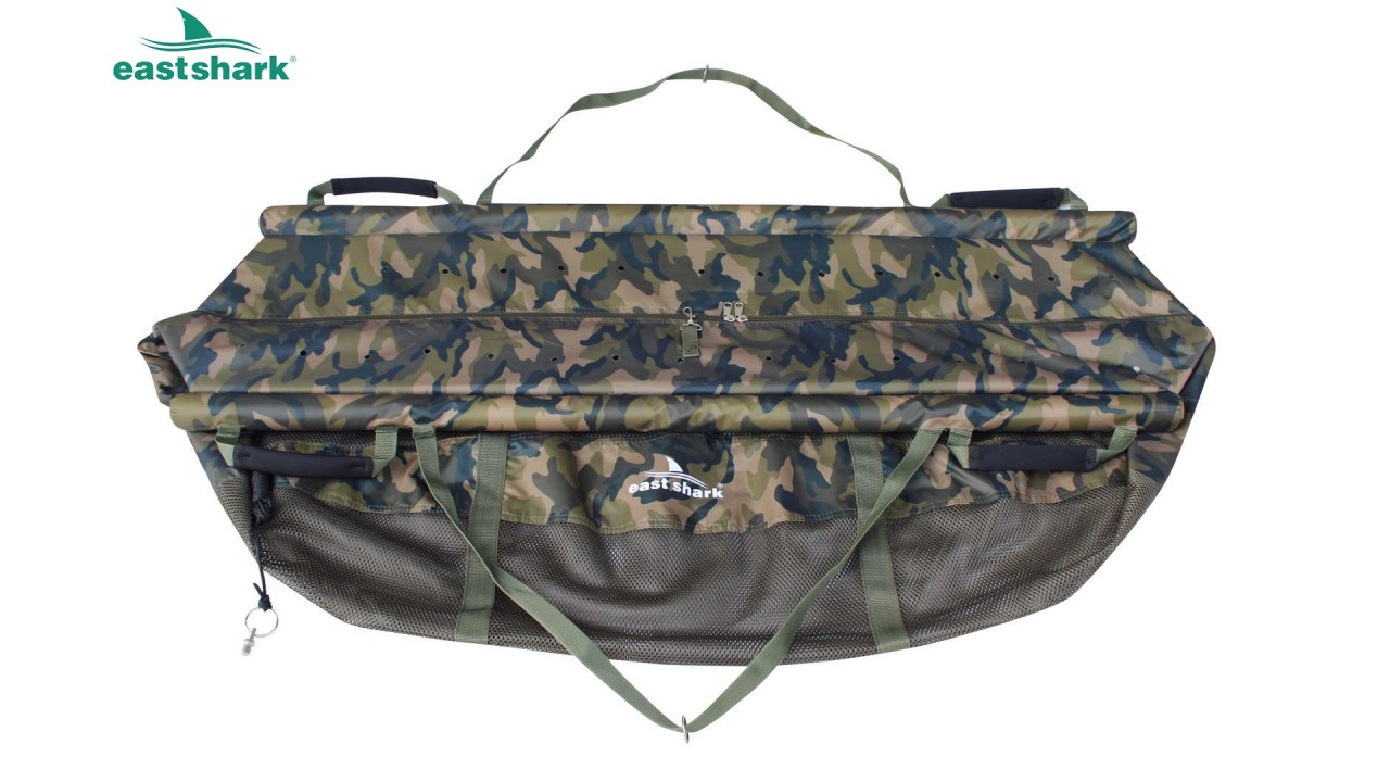 Выполнена из плотного материала (полиэстер 210D) с сетчатыми вставками, по краям имеет надежную молнию, позволяющую застегнуть сумку полностью по кругу и разместить в ней рыбу в воде.