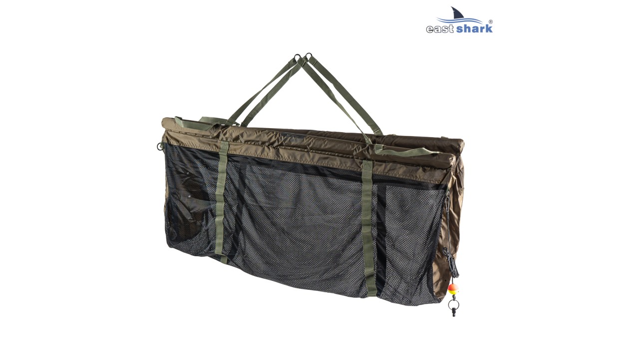 Выполнена из плотной сетки, по краям имеет надежную молнию, позволяющую застегнуть сумку полностью по кругу и разместить в ней рыбу в воде.