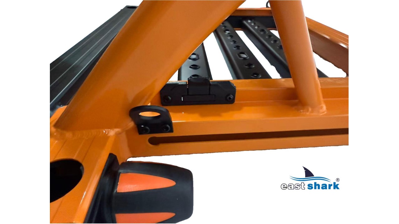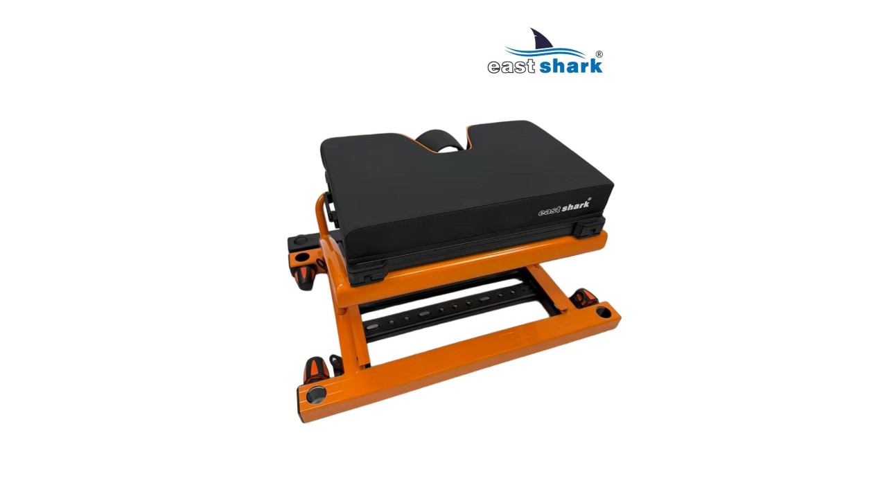 Высококачественная современная, футуристическая, профессиональная платформа с верхней полки известной и уважаемой компании Eastshark. Изготовлен из легкого и сверхпрочного дюралюминия, покрытого неабразивной краской черного и оранжевый цвета. Конструкция площадки основана на закрытых дюралюминиевых профилях