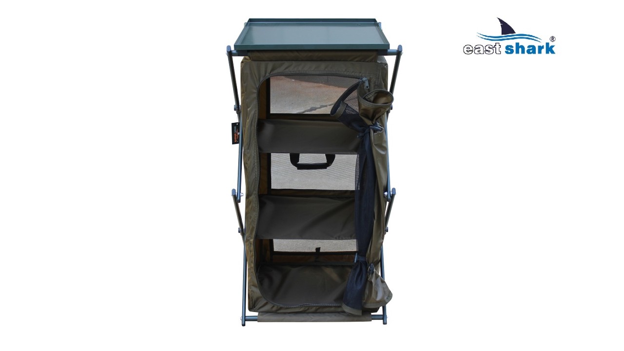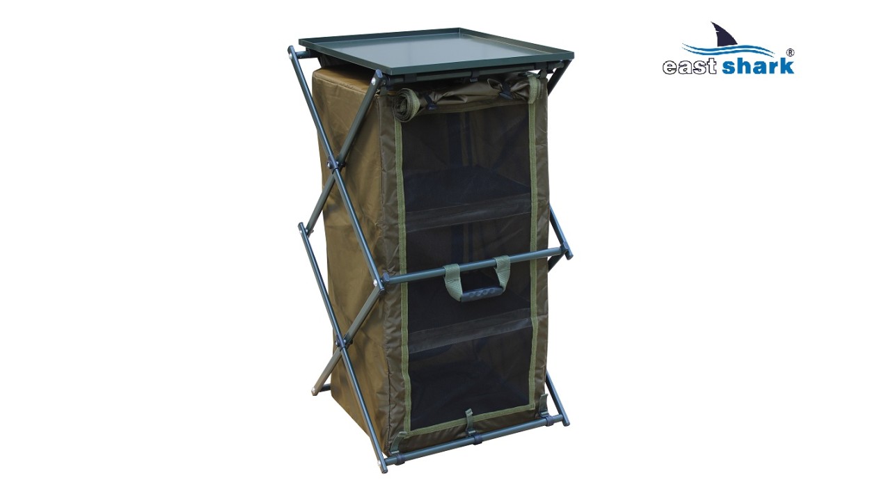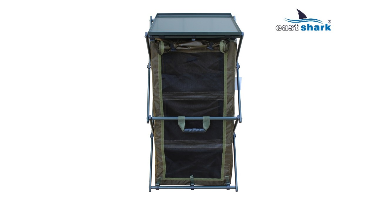 В первую очередь стеллаж предназначен для хранения столовых принадлежностей и приготовления пищи на природе, при этом он отлично подходит для хранения вещей и аксессуаров для рыбалки во время длительных рыболовных сессий, позволяет сэкономить много места в палатке!