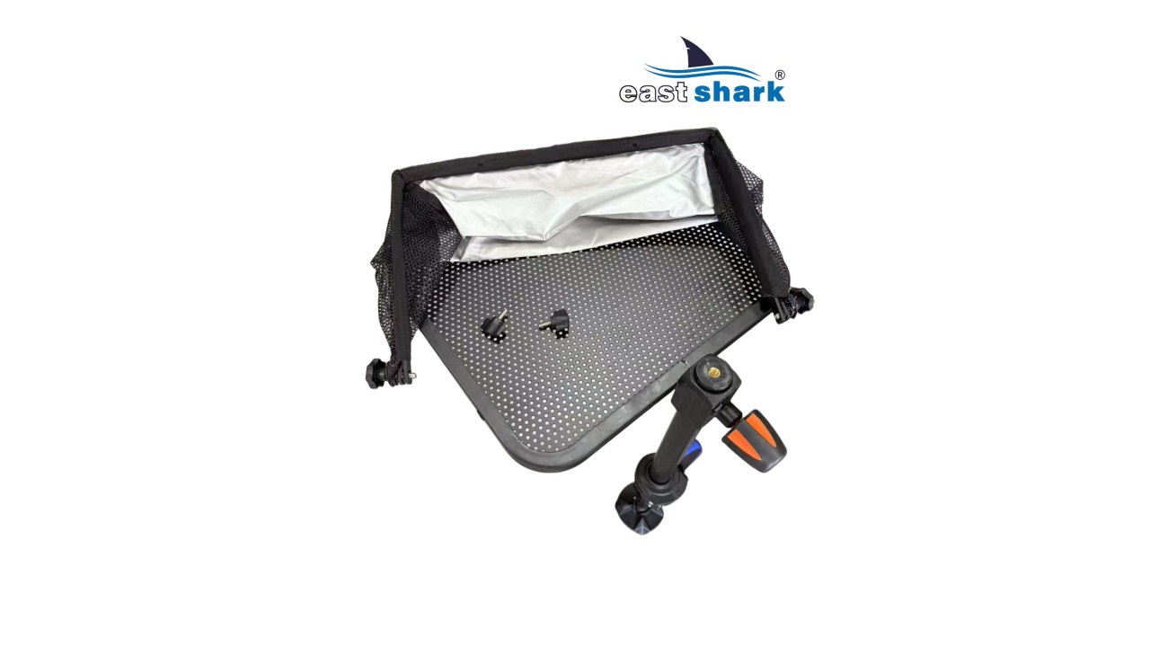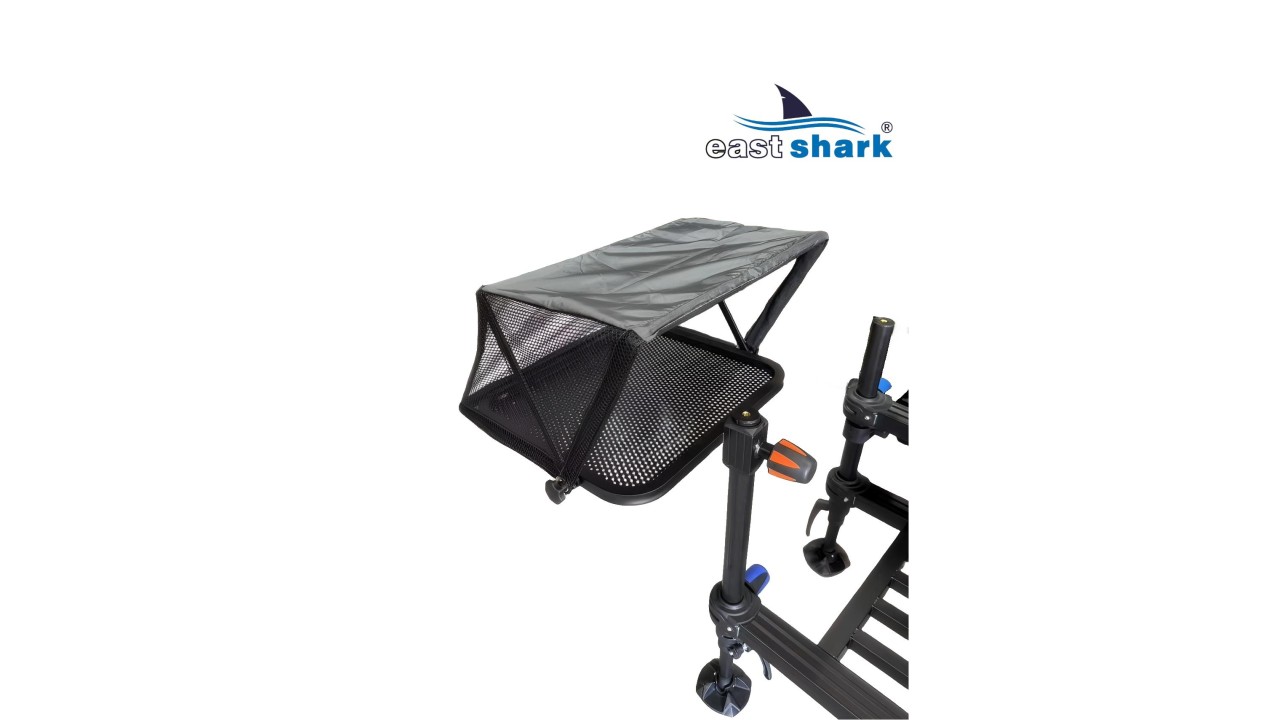 Стол рыболовный для платформ c Маркиза Eastshark Про Спорт крепится на ноги платформы, что позволяет, в отличие от обычного стола, исключить при его установке трудоемкие регулировки по горизонту. Жидкостной уровень, расположенный у кромки стола, также облегчает эту задачу. Большая маркиза хорошо защищает наживку и прикормку, расположенные на столе от воздействия солнца или осадков. Стол выпускается в двух видов – «левый» и «правый» – что дает возможность рыболову выбрать наиболее удобную для себя модель. Диаметр.крепления.ноги:D25/D30/D36. Маркиза разборная