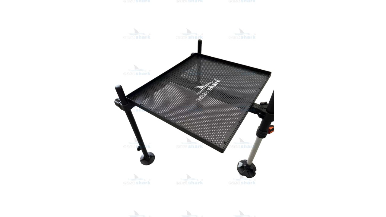 Данный элемент имеет огромную популярность у любителей рыбалки и профессиональных спортсменов. Оптимальный размер стола позволяет просто и комфортно разместить на нем приманки, прикормки, различные дипы, монтажи, Выполнен из алюминиевого сплава и имеет перфорированную поверхность. Система крепления к ноге на 36 мм (через втулку можно крепить к ноге 25 мм/30ММ) - удобная и надежная, позволяет легко регулировать положение стола. Стол рыболовный для платформы комплектуется двумя телескопическими ногами 54-82см.
