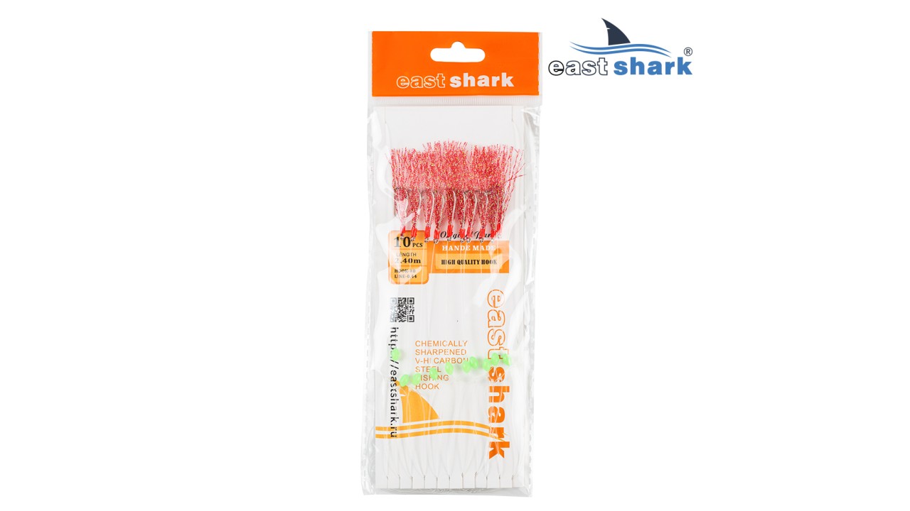 Готовая оснастка на 10 крючков для ловли хищной рыбы, отлично подходит для ловли селедки и морской рыбалки.