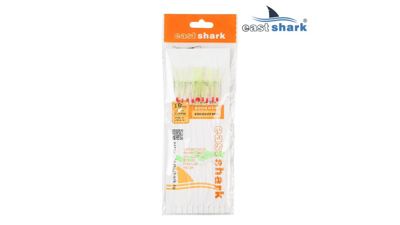 Готовая оснастка на 10 крючков для ловли хищной рыбы, отлично подходит для ловли селедки и морской рыбалки.