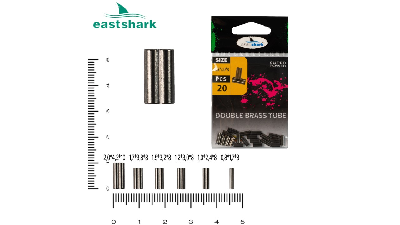 Двойная латунная обжимная трубка D 1,7*3,8*8 (уп./15шт.)