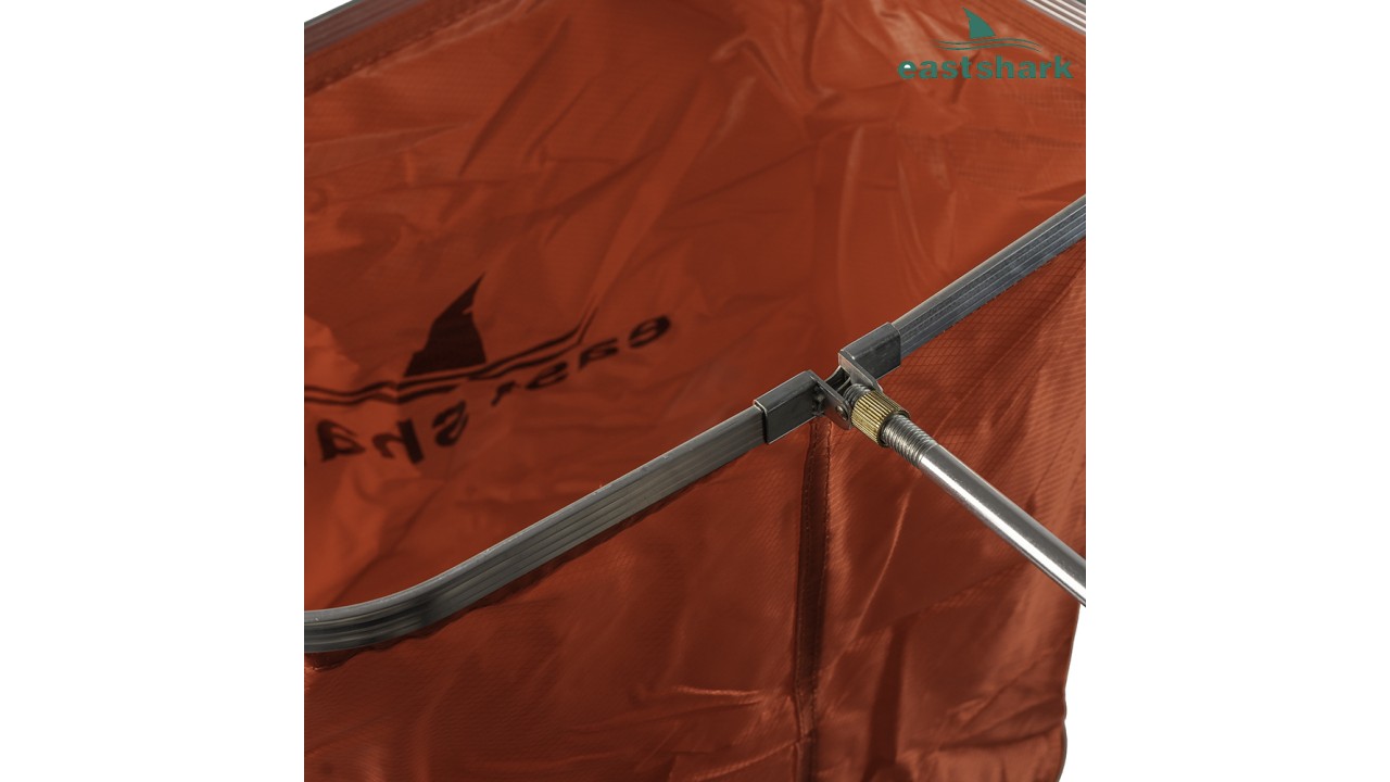 Металлическая стойка позволяет фиксировать горловину садка в грунте на берегу или на платформе!