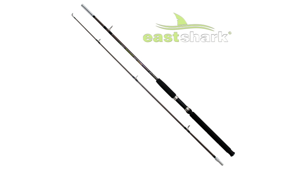 Спиннинг стеклопластиковый Восточная акула с прикручивающимся складом. Тест 100-250 грамм, длина от 1,65 до 3 метров.