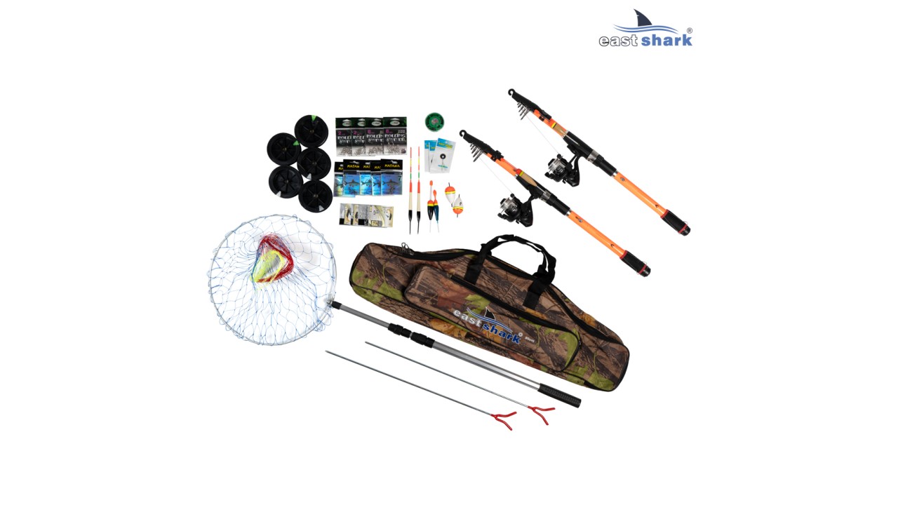 -Универсальное бюджетное телескопическое композитное удилище с катушкой и леской, полностью оснащенное, модель "Delta" XXX EastShark с тестом 100-200 гр. 3,0м 2шт.
